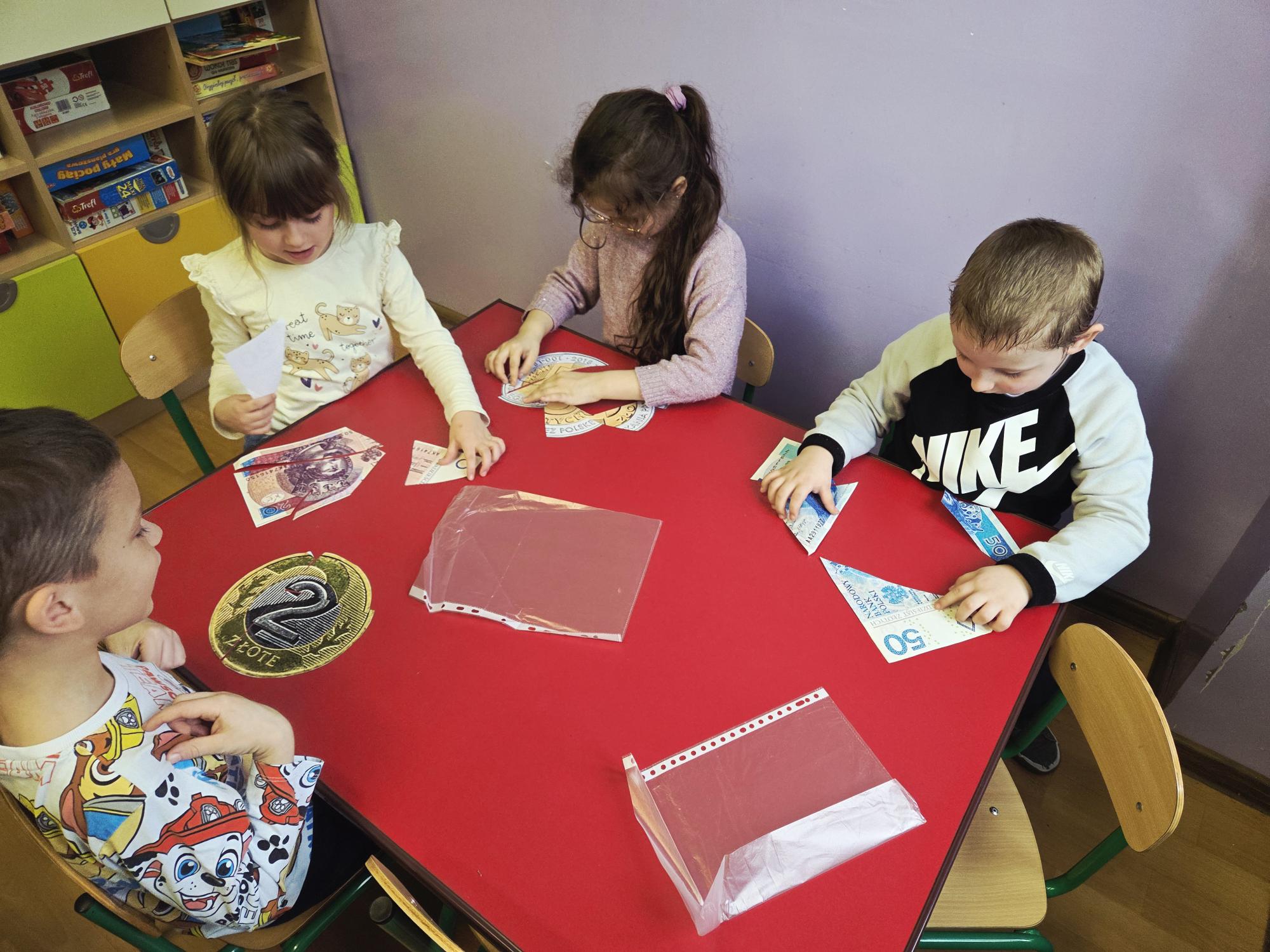 Rozmawialiśmy o tym, skąd biorą się pieniądze, do czego służą oraz dlaczego warto je oszczędzać. Dzieci dowiedziały się także, że każda rzecz ma swoją cenę, a rozsądne gospodarowanie pieniędzmi pomaga spełniać marzenia.