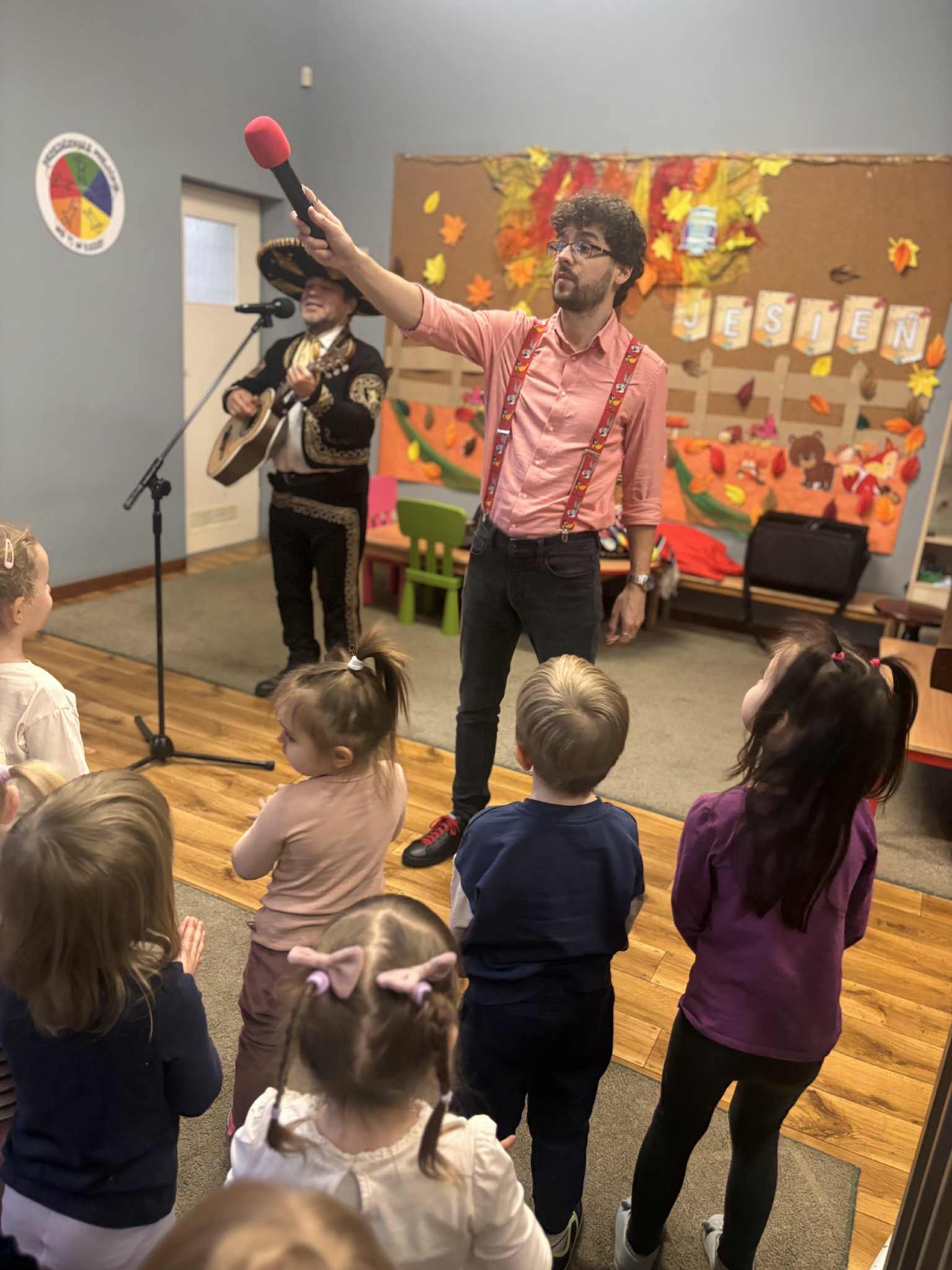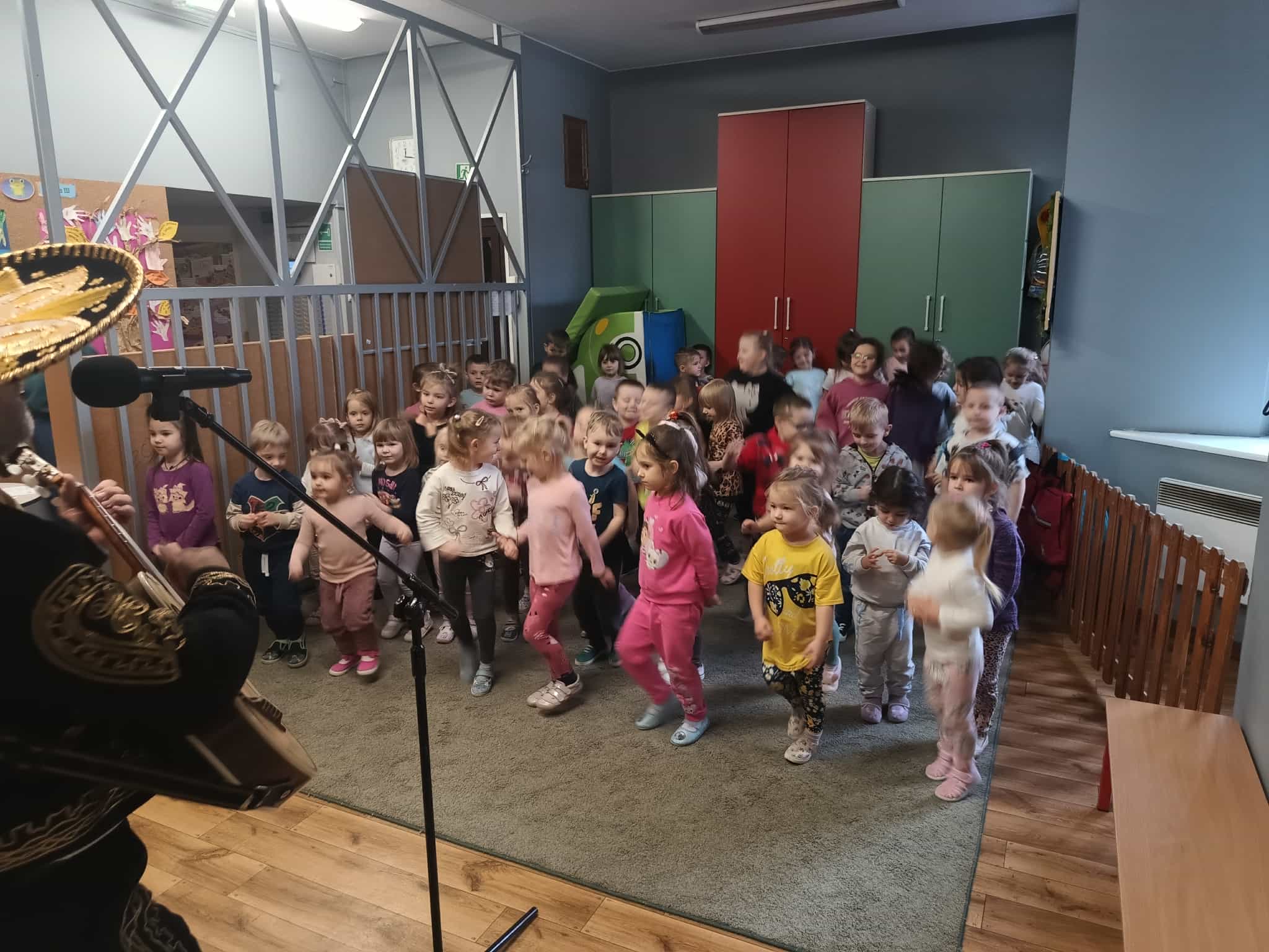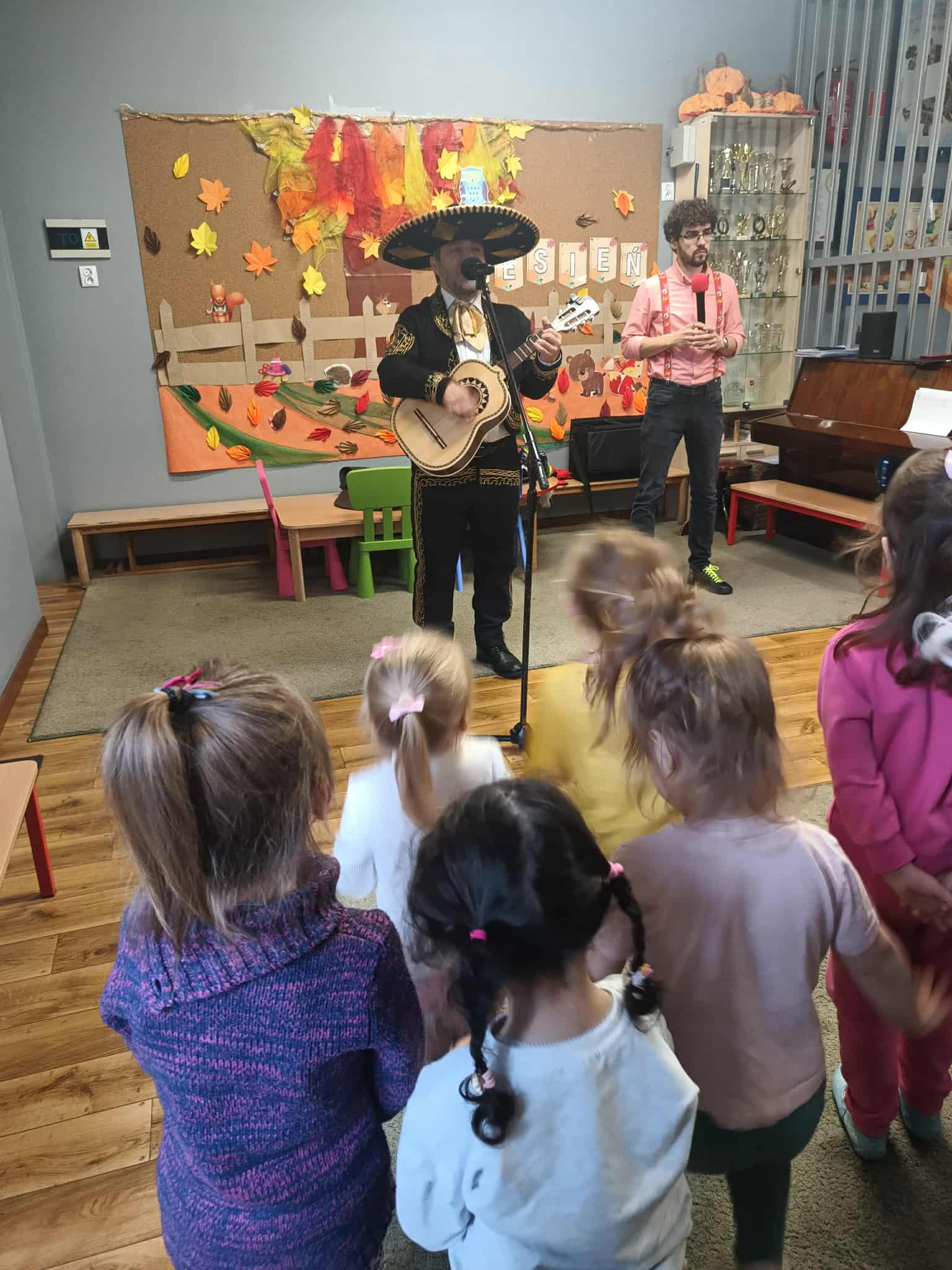 Podczas spotkania przedszkolaki poznały radosne, pełne energii rytmy meksykańskiej muzyki. Gościem specjalnym był Mariachi, który zaprezentował dzieciom tradycyjny instrument – meksykańską gitarę vihuela. Muzyk zagrał na niej żywiołowe, znane meksykańskie melodie, a także zachęcał dzieci do wspólnego śpiewu i klaskania.