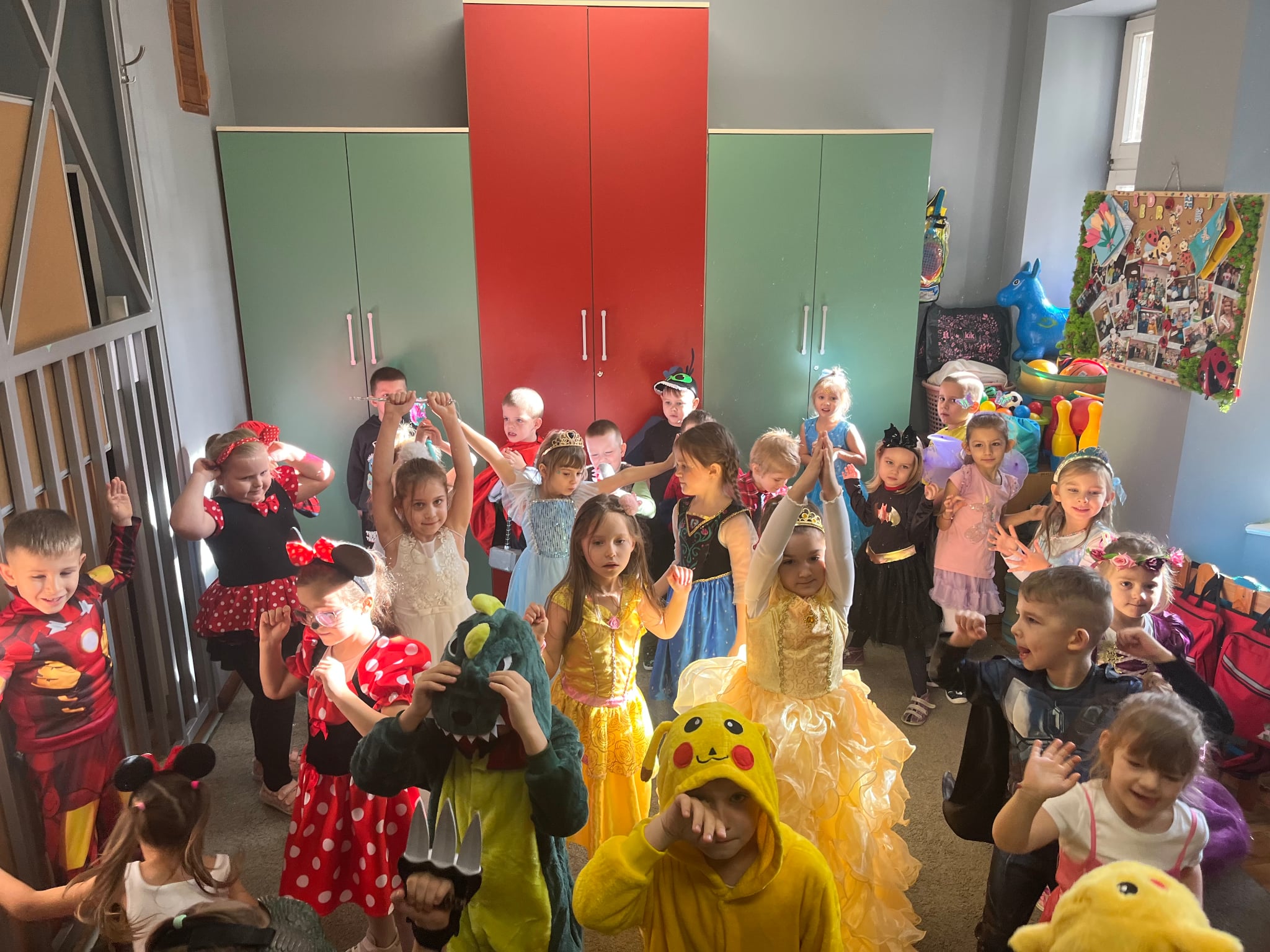 Dzisiejszego nasze przedszkole zamieniło się w prawdziwą, bajkową krainę! Podczas Balu Postaci z Bajek dzieci wcieliły się w swoich ulubionych bohaterów – na sali mogliśmy zobaczyć księżniczki, superbohaterów, zwierzątka, wróżki, piratów i wielu innych niezwykłych gości.