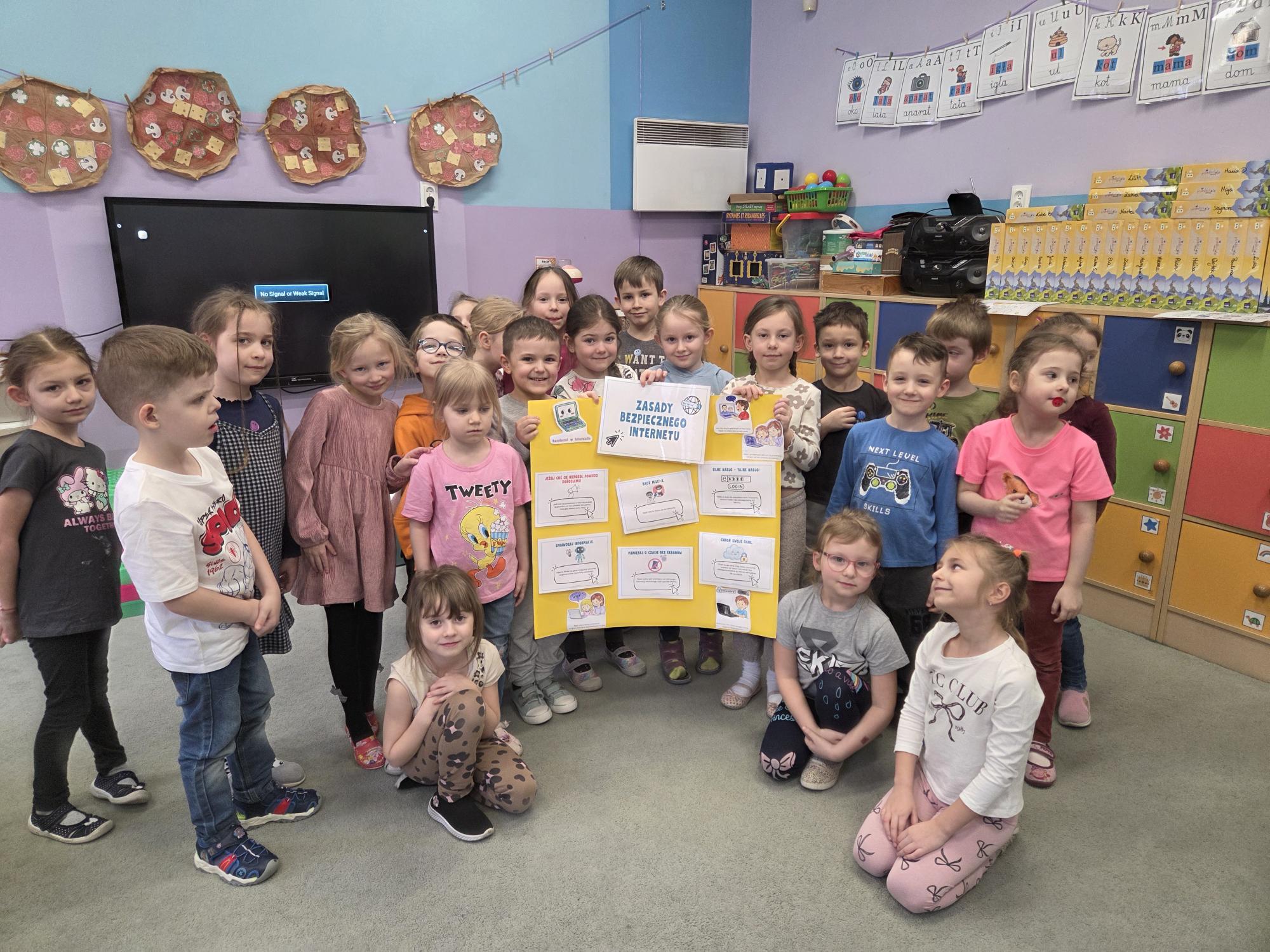 Dzieci wspólnie stworzyły plakat przedstawiający najważniejsze zasady korzystania z Internetu. Wśród nich znalazły się m.in.: