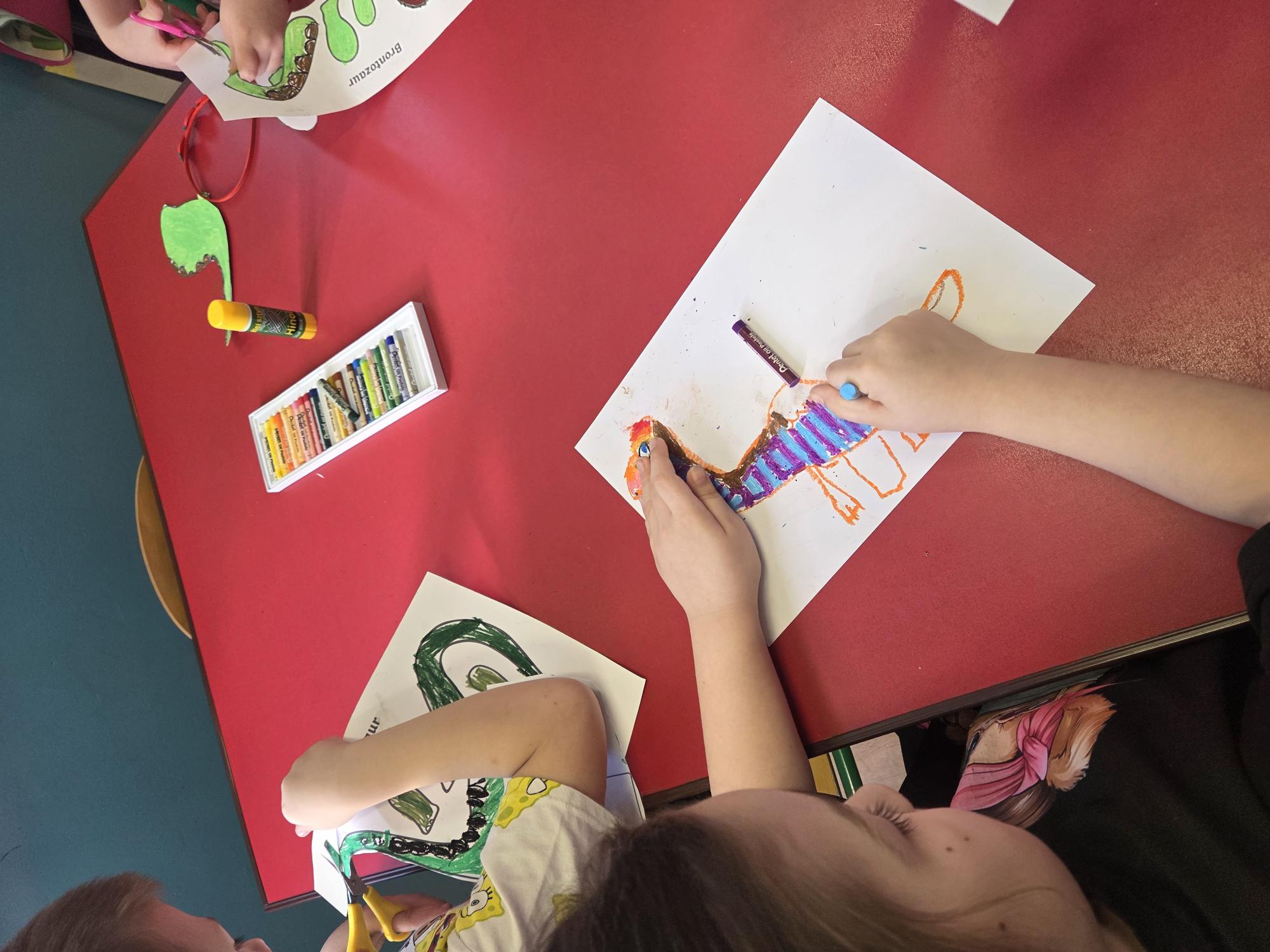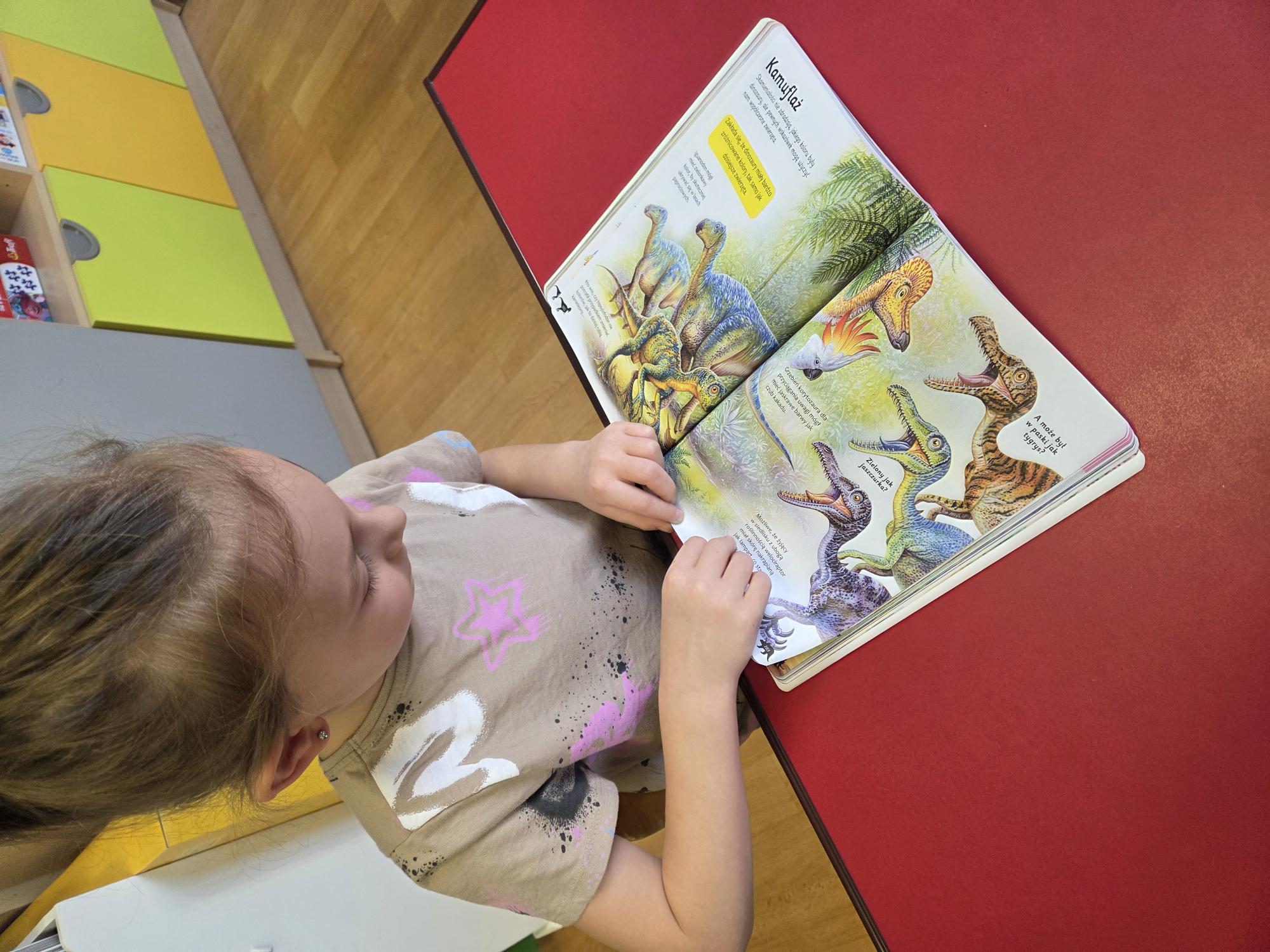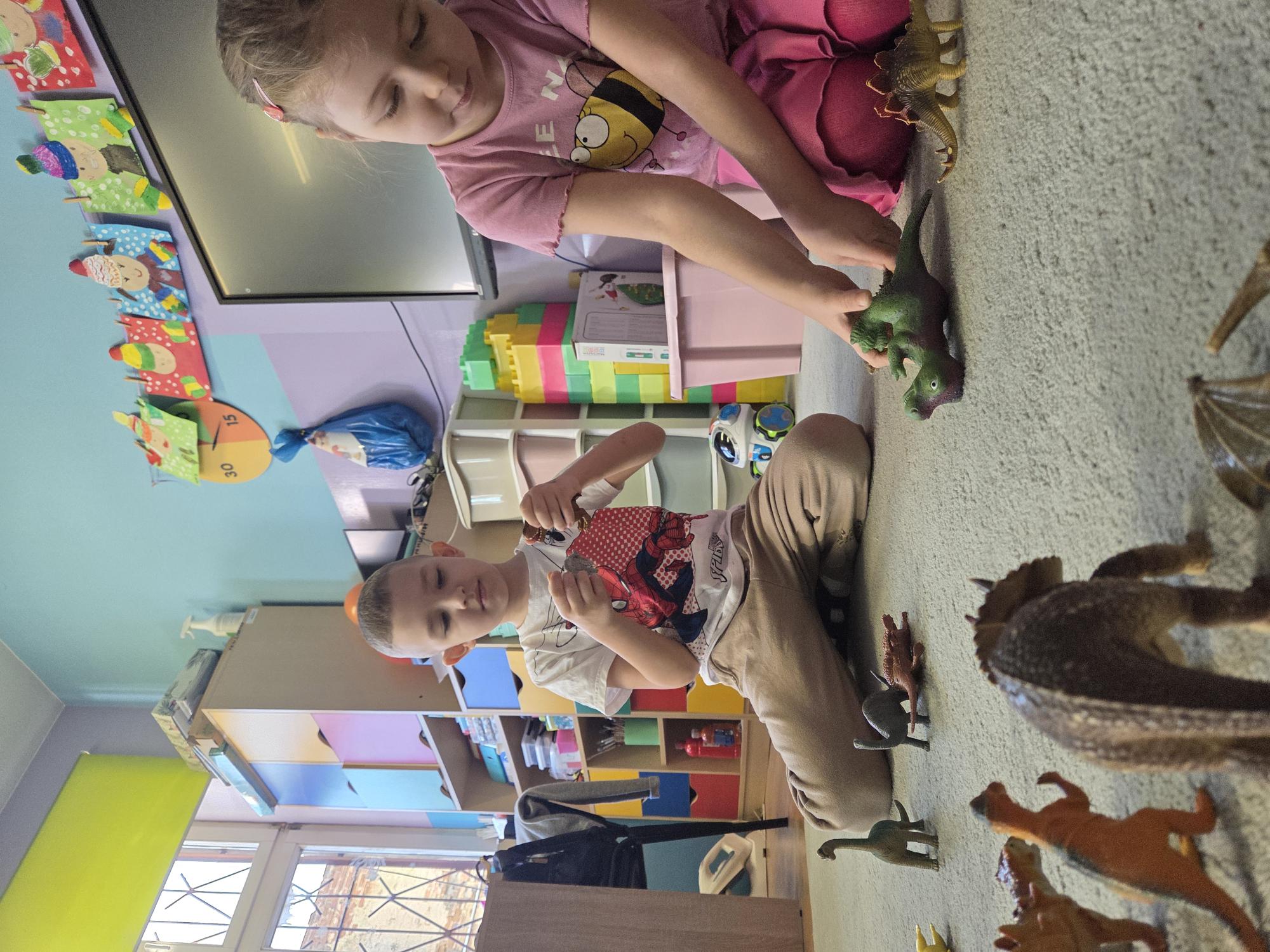 Dzieci poznały różne gatunki dinozaurów, dowiedziały się, czym się żywiły oraz jak wyglądało życie na Ziemi miliony lat temu. Podczas zajęć oglądaliśmy ilustracje i książki o dinozaurach, a także rozmawialiśmy o pracy paleontologów i o tym, w jaki sposób odnajduje się skamieniałości.