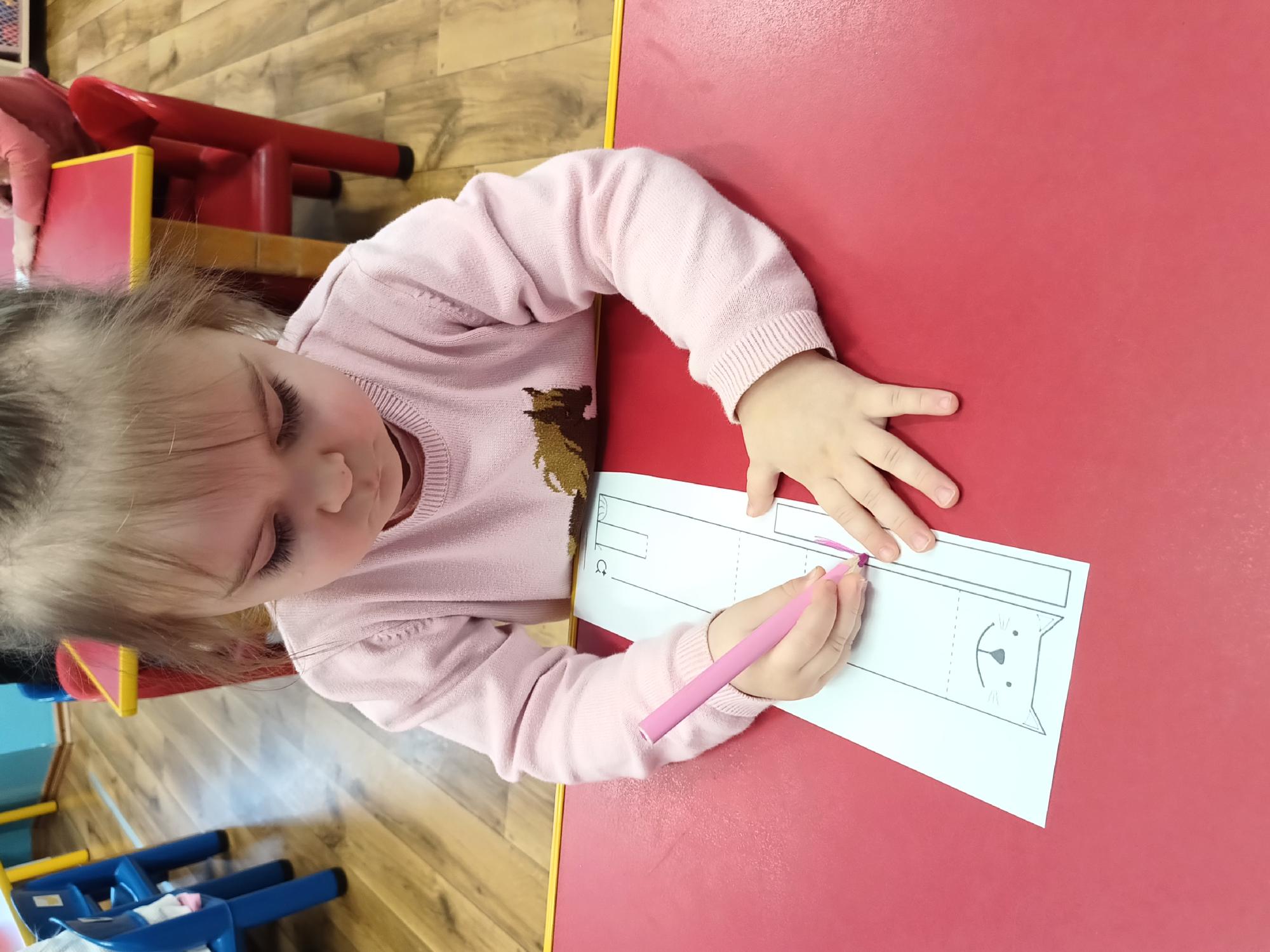 Po części edukacyjnej przyszedł czas na działania plastyczne. Każde dziecko stworzyło swojego własnego, wyjątkowego kotka. Powstały koty małe i duże, w paski, w kropki, a nawet bajkowe – wszystkie były niepowtarzalne i wykonane z ogromnym zaangażowaniem.