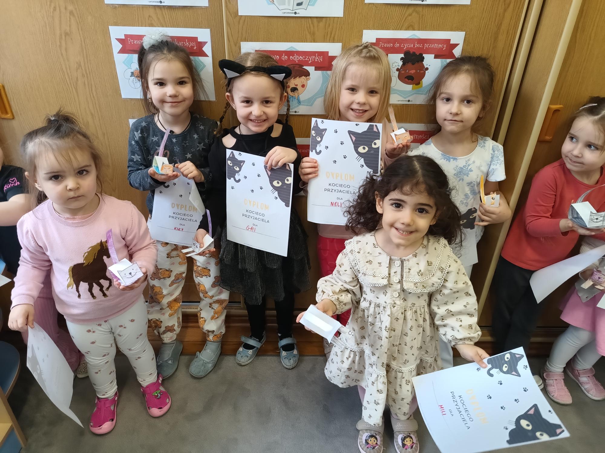 Na zakończenie zabaw każde dziecko otrzymało pamiątkowy dyplom Przyjaciela Kota, który był wyrazem uznania za aktywny udział w zajęciach.