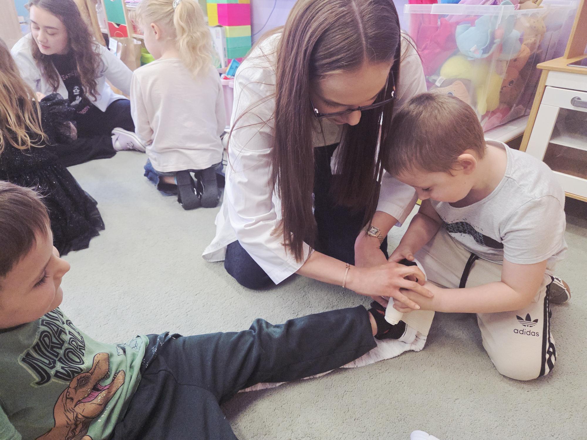 Podczas spotkania dzieci miały okazję w ciekawy i przystępny sposób poznać zasady udzielania pierwszej pomocy. Przedszkolaki dowiedziały się, jak reagować w sytuacjach zagrożenia, jak wezwać pomoc oraz jak zadbać o bezpieczeństwo swoje i innych.