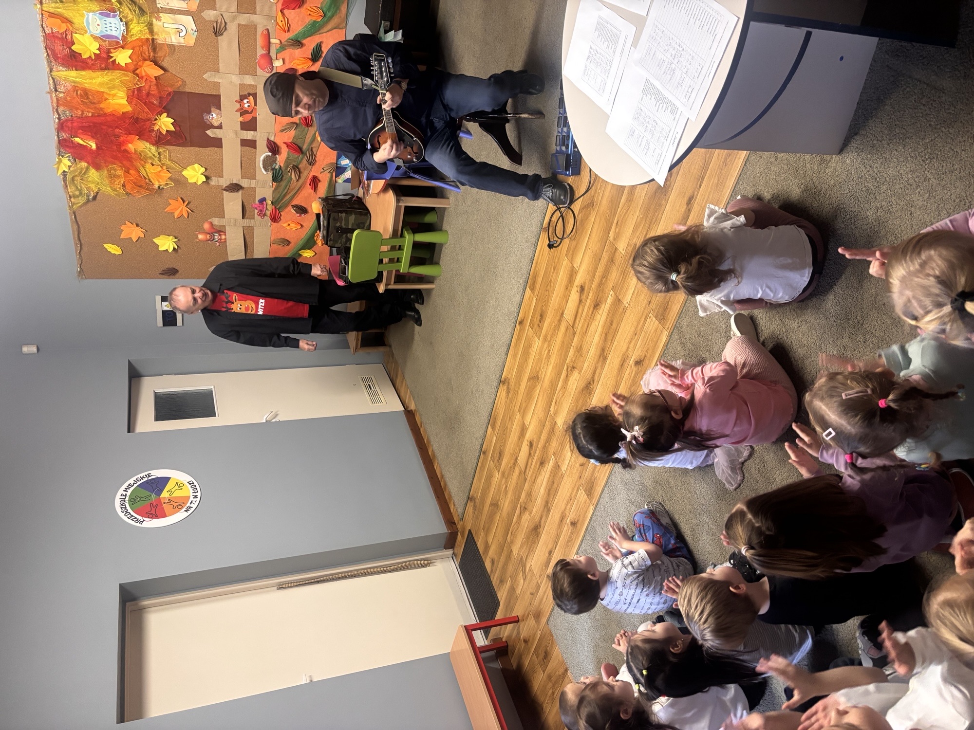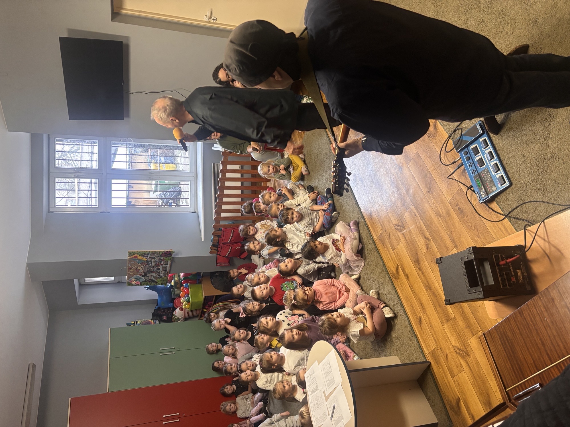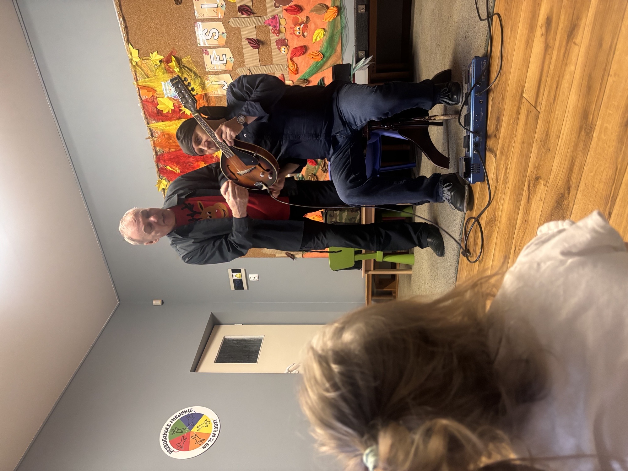 W naszym przedszkolu odbył się wyjątkowy koncert muzyczny, podczas którego Pan Witek zabrał dzieci w fascynującą podróż po świecie instrumentów strunowych. Przedszkolaki miały okazję z bliska poznać mandolinę oraz gitarę elektryczną – dowiedzieć się, czym się różnią, jak brzmią i w jaki sposób można na nich grać.