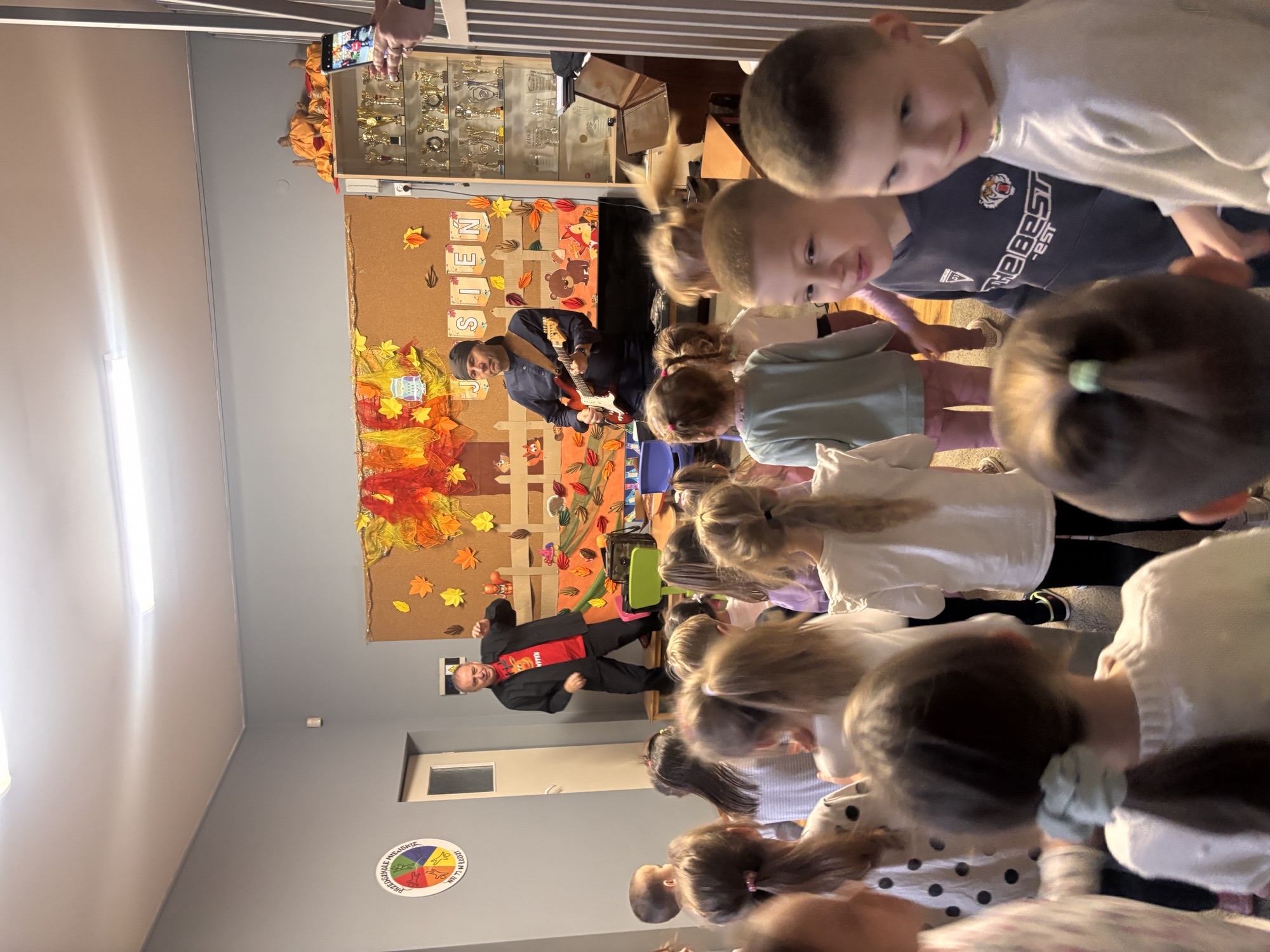 Najwięcej radości przyniosła wspólna zabawa przy znanych wszystkim muzycznych hitach, które Pan Witek zaprezentował na swoich instrumentach. Dzieci słuchały, tańczyły, rytmicznie klaskały i z entuzjazmem uczestniczyły w całym wydarzeniu.