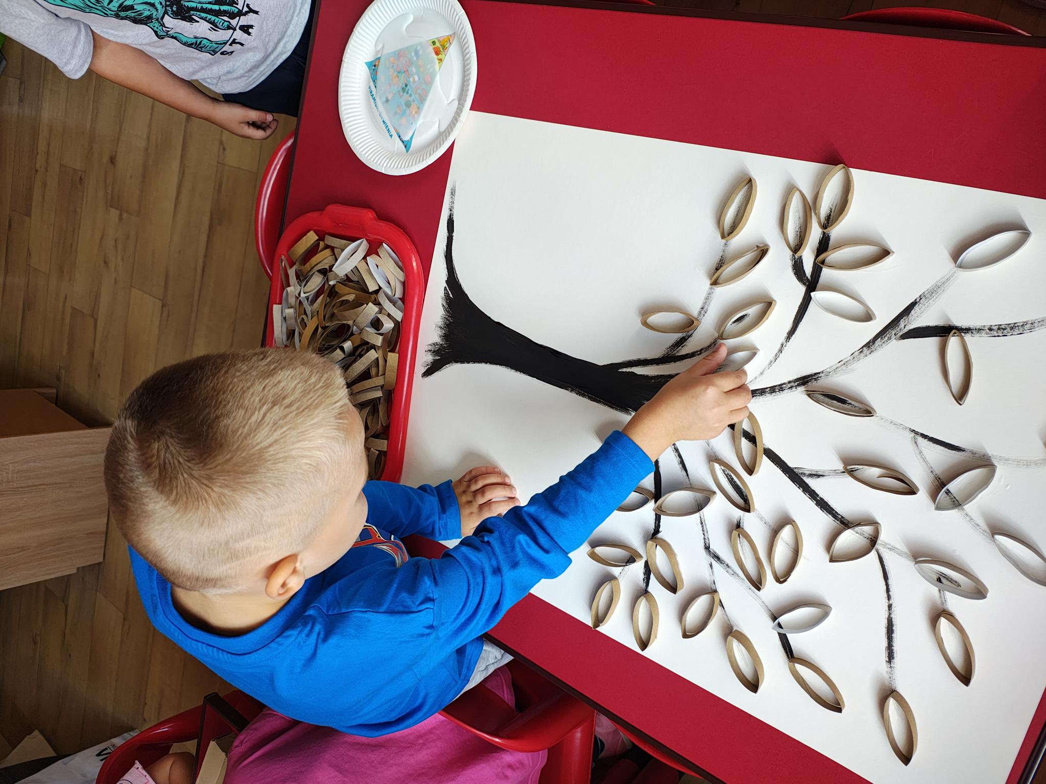 Wspólnie, przy użyciu farb i rolek po papierze toaletowym dzieci odtworzyły uroki polskiej złotej jesieni. To nie tylko doskonała okazja do rozwijania kreatywności i zdolności manualnych, ale też do nauki współpracy, dzielenia się pomysłami i pracy zespołowej. Każdy przedszkolak dołożył swoją „gałązkę” do naszego wspólnego dzieła!