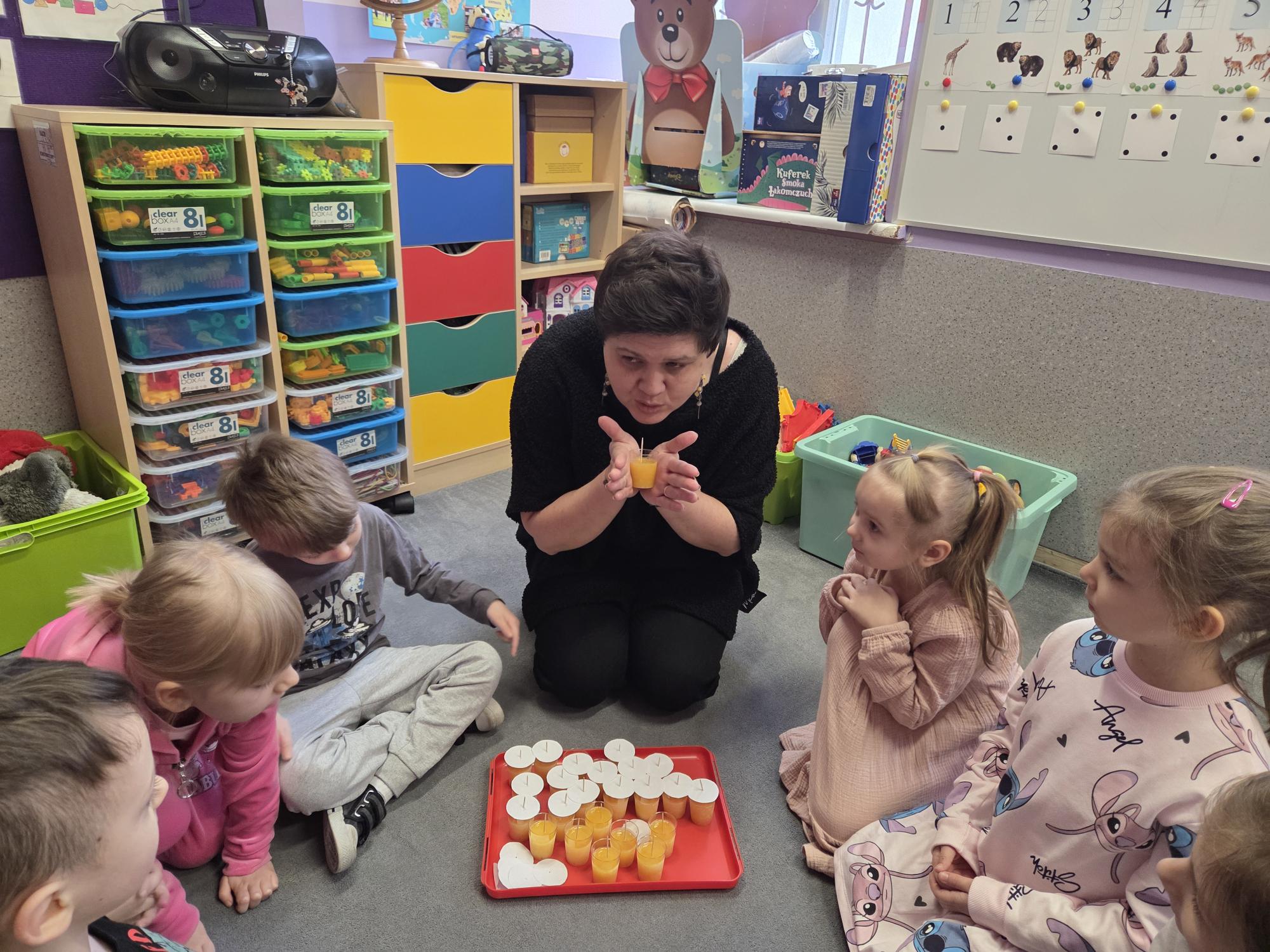 Na zakończenie czekała na wszystkich pyszna niespodzianka – własnoręcznie przygotowane lody z soku pomarańczowego. To była nie tylko świetna zabawa, ale także smakowite doświadczenie!